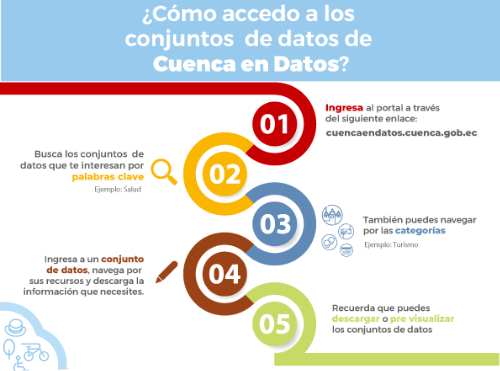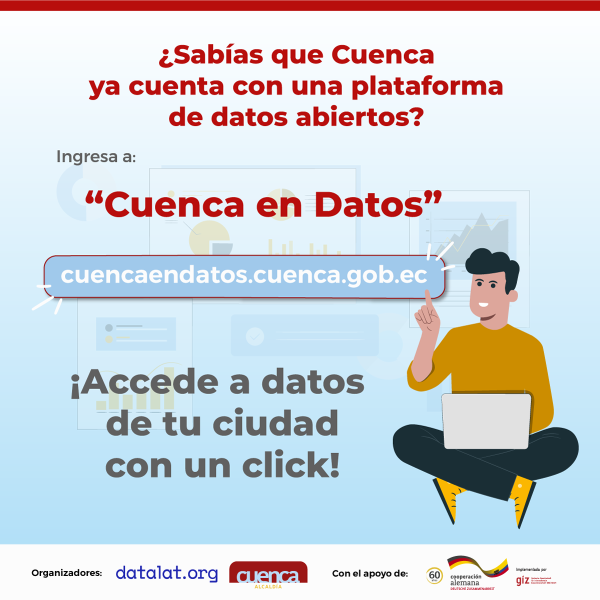 El GAD Municipal de Cuenca, fundación DATALAT y la Cooperación Alemana GIZ, crearon colaborativamente la Guía de Datos Abiertos de Cuenca, en ella se definen las especificaciones técnicas, metodológicas, estándares y pautas a seguir para la publicación de datos abiertos en el GAD Municipal de Cuenca, sus empresas y entidades adscritas. Conoce más aquí